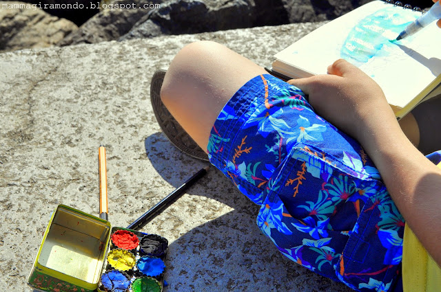 Da quando era piccolissimo (ve lo ricordate in Scozia?) Aj adora disegnare on the road.